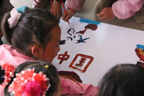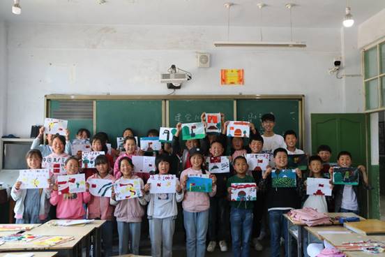 朗诵比赛后,队员们为少先队员们准备了五彩的颜料和长幅画纸,引导他们用绘画表达对祖国繁荣富强、家乡发展变化、个人幸福生活的真切感受,从中体会党在全面建成小康社会、实现中华民族伟大复兴和建设社会主义现代化强国的目标中的重要地位。
