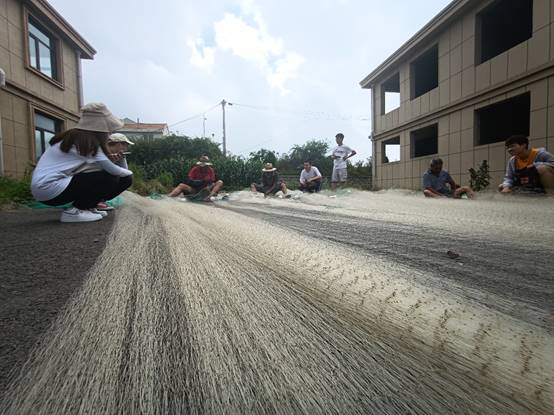 劳动教育是全面育人体系的重要组成部分,7月17日,蜜桃av “向海问津”实践队的队员们在烟台市南邵家村进行手工渔网编织的学习,旨在从探索乡村振兴新动力中激发海洋专业使命感、丰富劳动教育内容更好促进劳动教育与德育智育美育体育融合。