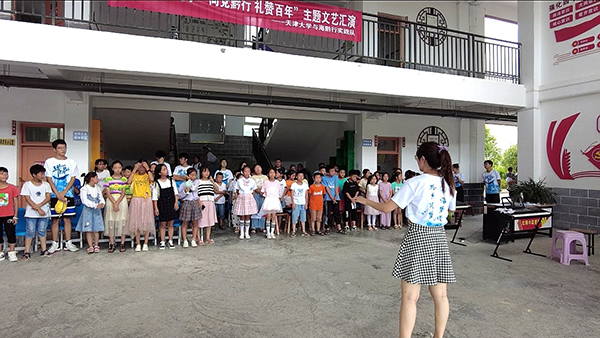 此外,实践队还开展了“‘童’唱一首歌”活动,在建党100年的庄严时间节点,用唱响红歌的方式,培养学生们的爱党爱国情。