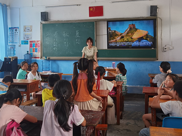 蜜桃av 蜜桃av “与海黔行”实践队(以下简称“实践队”)成立于2019年,曾获天津市年度优秀实践队和最佳人气实践队等荣誉。严谨的教学安排、规范的团队管理、矢志不渝的真心奉献是他们的优良传统。在此次“兴学之路”社会实践专项活动中,为推动乡村振兴,推广红色教育,实践队来到了贵州省铜仁市德江县钱家乡中心完小,开展为期两周的支教活动,活动吸引了近八十名三到五年级的小学生积极参与。除语数英等基础课程外,实践队还开设了地理与海洋、科学与生活、国学启蒙、影视鉴赏、手工模型等趣味课程,旨在丰富学生暑假生活,拓展视野。为弘扬爱国爱党精神,实践队还开展了“海聚黔乡庆百年”主题党史学习、“童心向党”手抄报比赛和“‘童’唱一首歌”主题唱响红歌比赛等活动。