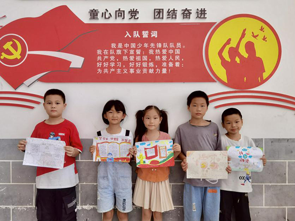 课后,为了巩固党史学习课所学,实践队组织了“颗颗童心向党,昭昭百年共庆”主题手抄报比赛,让学生们在知行合一中更好地传承红色基因、赓续革命精神。