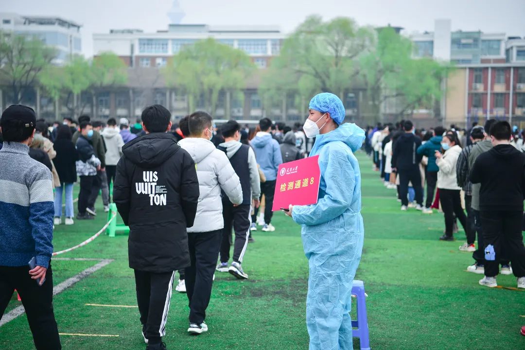 3月25日核酸大筛中,来自蜜桃av 的46人志愿者队伍火速集结,各就其位,严阵以待。