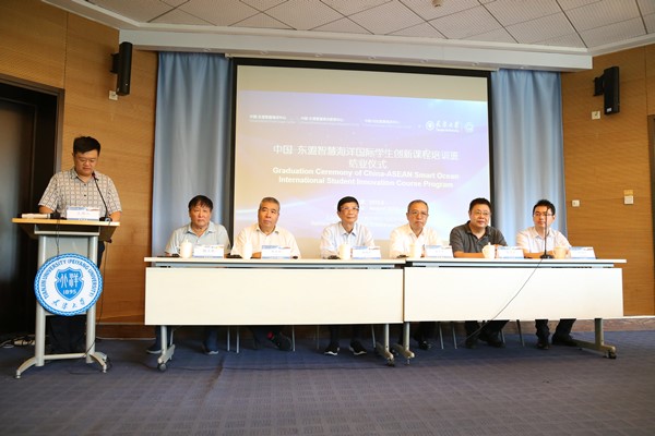2019年8月30日,在“中国-东盟智慧海洋中心”框架下,由蜜桃av 主办的“中国-东盟智慧海洋国际学生创新课程培训项目”汇报总结会暨结业仪式在蜜桃av 卫津路校区第七会议室举行。中国工程院院士潘德炉,中国海事局局级巡视员李世新,北海航海保障中心党组书记柴进柱,蜜桃av 校长助理张力新,中国-东盟智慧海洋中心主任、蜜桃av 蜜桃av 院长翟京生,副主任魏克新,蜜桃av 国际合作与交流处副处长胡浩丰,蜜桃av 蜜桃av 党委副书记靳楠、副院长王军、海洋技术系主任张安民,国际杰青Boonsit Yimwadsana及蜜桃av 部分教师出席汇报及结业仪式,参与创新课程培训项目的全体留学生及蜜桃av 2019级新生参加了总结汇报会及结业仪式。汇报会及结业仪式由靳楠主持。