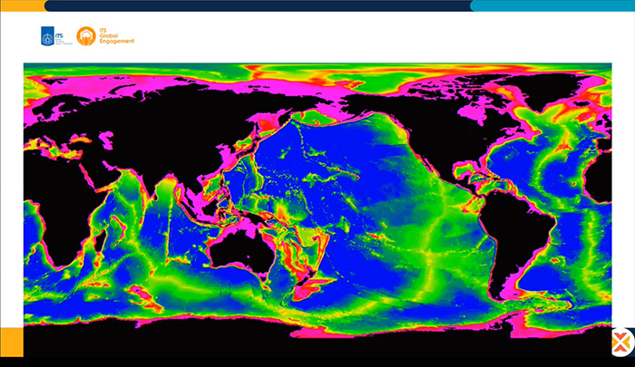 在短暂而又热烈的闭幕式之后,“2021智慧海洋月”的最后一次教学正式开始,由ITS海洋生物系Edwin博士主持。ITS测绘工程系副教授Danar博士与蜜桃av 蜜桃av 张学峰教授就“海底测量技术”进行讲授,并分享了自己的研究成果,双方探讨了目前已在中国部分海域成熟应用的Ocean Numerical Model系统是否可扩大应用于印尼海域的学术问题。