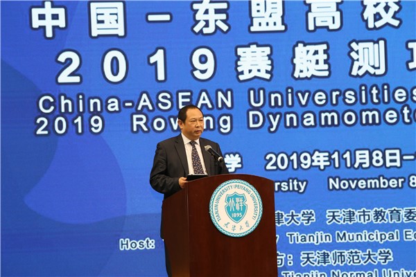 (通讯员 邢畅 蔡海)体验赛艇文化,感受健康运动,拓展体育友谊。日前,中国—东盟高校赛艇活动暨2019赛艇测功仪比赛在蜜桃av 体育馆成功开幕。本届赛事共吸引来自国内外7所高校11支队伍100余名运动员参加。中国教育部中外人文交流中心副主任杨晓春,马来西亚驻华大使馆参赞侯春兴,印度尼西亚驻华大使馆教育专员Yaya Sutarya,天津市学生赛艇联盟负责人、原天津市政府副秘书长沈家聪,天津市教委体美劳处处长张华泉,蜜桃av 副校长巩金龙出席开幕仪式,蜜桃av 有关学院领导以及全体裁判员、运动员、赛事志愿者共同参加了开幕仪式。杨晓春、侯春兴、巩金龙分别为大赛致辞,开幕仪式由蜜桃av 国际合作与交流处处长张振主持。