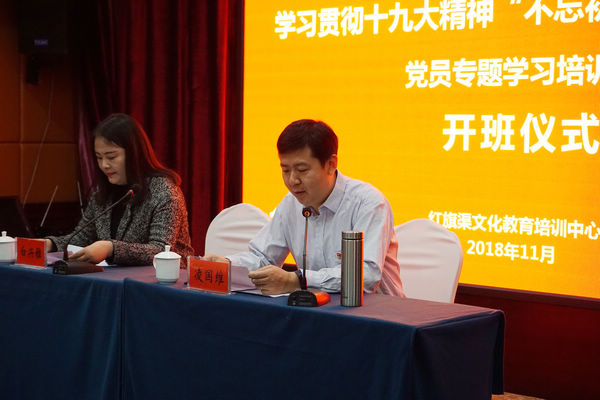 11月9日下午举行了开班仪式。红旗渠文化教育中心主任白兴雅致欢迎辞,她对培训班的举办表示祝贺,并介绍了林县的历史、红旗渠修建过程以及中心的发展情况。蜜桃av 党总支书记凌国维同志在讲话中指出,红旗渠是20世纪60年代林州人民在极其艰难的条件下,靠着一锤一铲两只手,从太行山腰修建的引漳入林工程,历时近十年,削平了1250座山头,架设151座渡槽,开凿211个隧洞,全长1500公里,被称为"人工天河"。红旗渠结束了十年九旱、水贵如油的苦难历史,孕育出"自力更生,艰苦创业,团结协作,无私奉献"的红旗渠精神。我们选择来到红旗渠参加培训,就是要学习这种精神,使之转化为我们“双一流”建设的精神源泉和不竭动力。他对学员提出了三点要求:一是要端正学习态度,在学懂弄通做实上下功夫;二是要深刻领悟红旗渠精神,做到学以致用;三是要将学习红旗渠精神与学习贯彻十九大精神和习近平新时代中国特色社会主义思想相结合。最后,凌国维同志为培训班学员代表王晨旭同志授班旗。