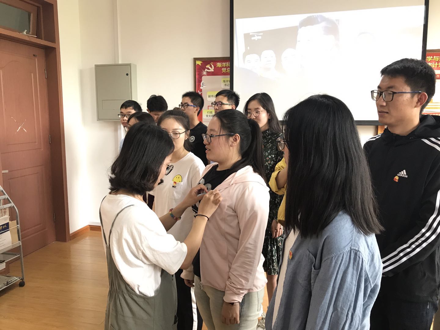 宣誓仪式在老党员为预备党员佩戴党徽中落下帷幕。