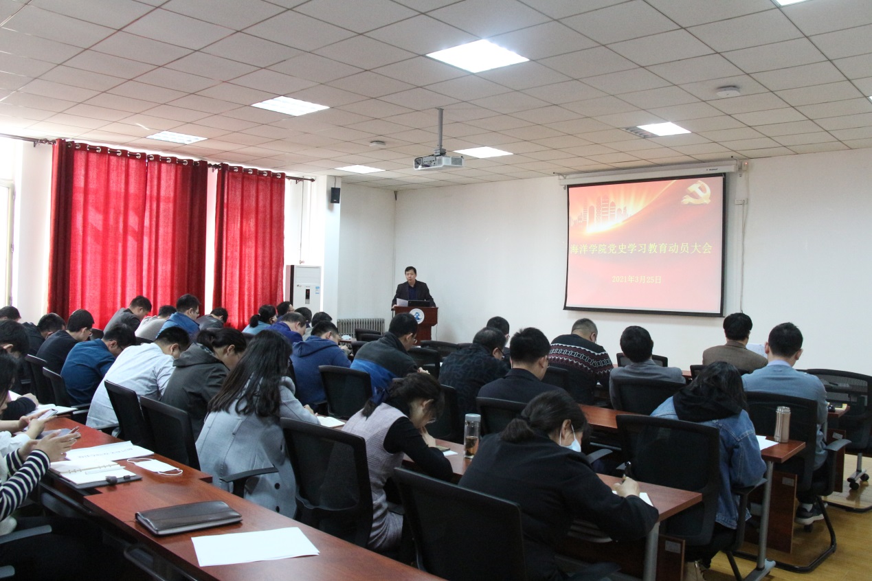 会上,学院党委向与会教职员工传达了《中共蜜桃av 委员会关于深入学习贯彻习近平总书记在党史学习教育动员大会上的重要讲话的通知》以及《中共蜜桃av 委员会关于在全校开展党史学习教育的实施方案》的精神,并对学院开展党史学习教育进行了动员部署。