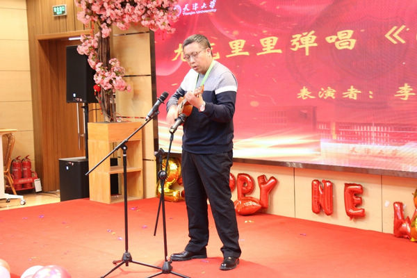 在联欢会上,学院教师发挥自身所长,表演了精彩的节目。杨宏和学院办公室全体教师的集体舞《大田后生仔》拉开了联欢会表演的序幕。