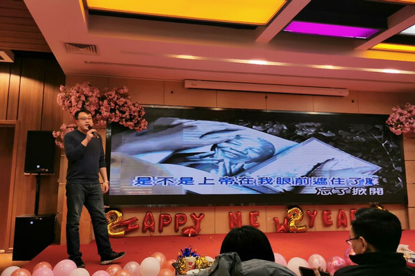 薛彬献上一曲《凡人歌》,希望老师们在平凡的岗位上做出不平凡的贡献!