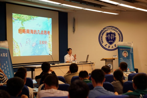 (通讯员 王楷然、孟雯)2018年9月18日,中国人民解放军海军军事学术研究所原所长、研究员,解放军战略规划咨询委员会委员,中国国际战略基金会高级研究员,军队职能装备军民融合协会首席顾问、南海问题研究学者王校轩先生做客北洋大讲堂、海洋时政大讲堂,为蜜桃av 师生带来一场题为《经略南海的几点思考》的讲座,蜜桃av 党总支副书记何立乾及国家海洋局的有关同志列席嘉宾。王校轩研究员以我国曾经创造过光辉灿烂的海洋文明但也经历过有海无防的屈辱历史开场,吸引了全场师生的强烈兴趣。关于经略南海,他从三个方面娓娓道来,一是经略南海的必然缘由,二是经略南海的历史机遇与制约因素,三是经略南海的重要举措。