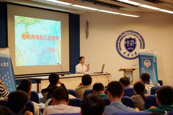 金翔龙(中国工程院院士)、陈锦德(天津市第十七届人大代表、中国航海学会全国首批航海科普专家、中国海事专家委员会专业分委会委员)、相文玺(国家海洋信息中心副主任、工程技术带头人、中国海洋学会海域和海岛分会主任委员)、王校轩(中国人民解放军海军军事学术研究所原所长、研究员、解放军战略规划咨询委员会委员、中国国际战略基金会高级研究员、军队职能装备军民融合协会首席顾问、南海问题研究学者),从海洋科学发展历史到海洋生态文明建设,从深海探测技术到南海问题探讨,四名专家用四场讲座带领新生领略海洋之广,感受海洋之深沉。