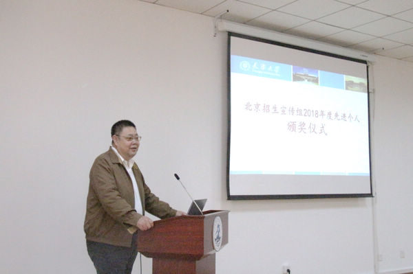 在总结发言中,翟京生首先对北京招生宣传组全体成员在2018年度的辛勤付出表达诚挚的谢意,对年度先进个人表示衷心的祝贺;其次从学校发展、教育教学、人才培养等角度进一步阐释了招生宣传工作的重要意义;最后鼓励大家团结一致,再接再厉,在接下来的招生宣传工作中再创新高。