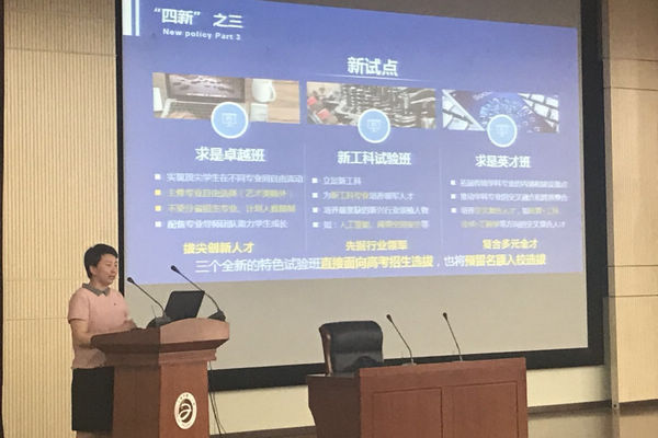 宣讲会上,王军向与会家长与同学们介绍了学校办学特色与优势,并详细介绍了蜜桃av 2018年推出的“四新”举措及在津招生政策。2018年,蜜桃av 实行大类招生选拔,新增智能医学工程、风景园林和海洋科学三个本科招生专业,新设求是卓越班、新工科实验班和求是英才班三个特色班,重点培养拔尖创新人才、行业领军人才、复合多元人才,招生计划动态调整、转专业转出无门槛,为考生提供更多选择理想专业的机会。最后,她表示,蜜桃av 真正将高考这件“天大”的事当成“蜜桃av ”的事,希望可以为优秀学子们提供更精准的报考服务,欢迎优秀学子报考蜜桃av 。