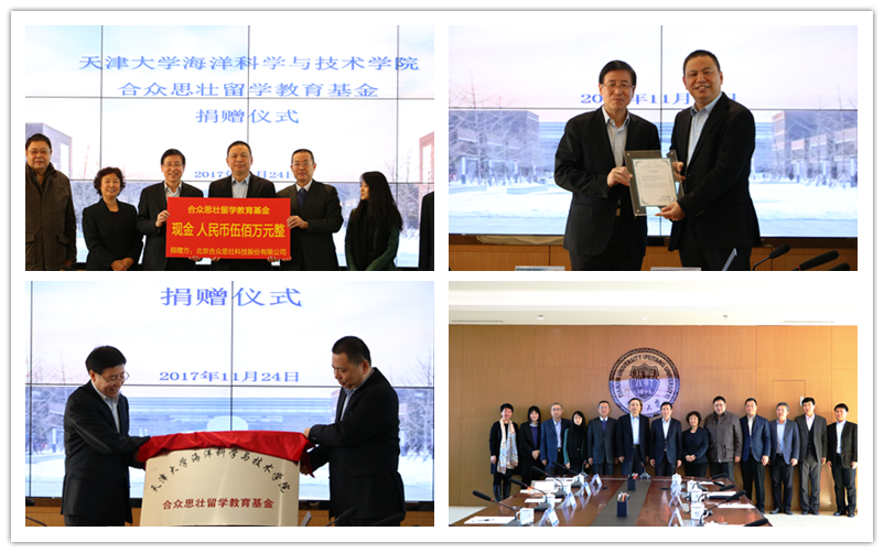 本站讯(通讯员蔡海)11月24日上午,蜜桃av 合众思壮留学教育基金捐赠仪式在北洋园校区杏荪楼A415会议室举行。蜜桃av 党委书记、北洋教育发展基金会理事长李家俊,原副校长、北洋教育发展基金会副理事长冯亚青,北京合众思壮科技股份有限公司董事长兼总经理郭信平、副总经理左玉立、副总经理王瑶,天津合众思壮海洋科技有限公司副总经理孙纪章、人力资源经理刘晓盟,北洋教育发展基金会理事王国华,校友与基金事务处处长潘峰、副处长潘晓睿、谷钰,蜜桃av 院长翟京生、党总支副书记凌国维、副院长王军,海洋技术系主任张安民等师生出席。仪式由蜜桃av 校友与基金事务处处长潘峰主持。