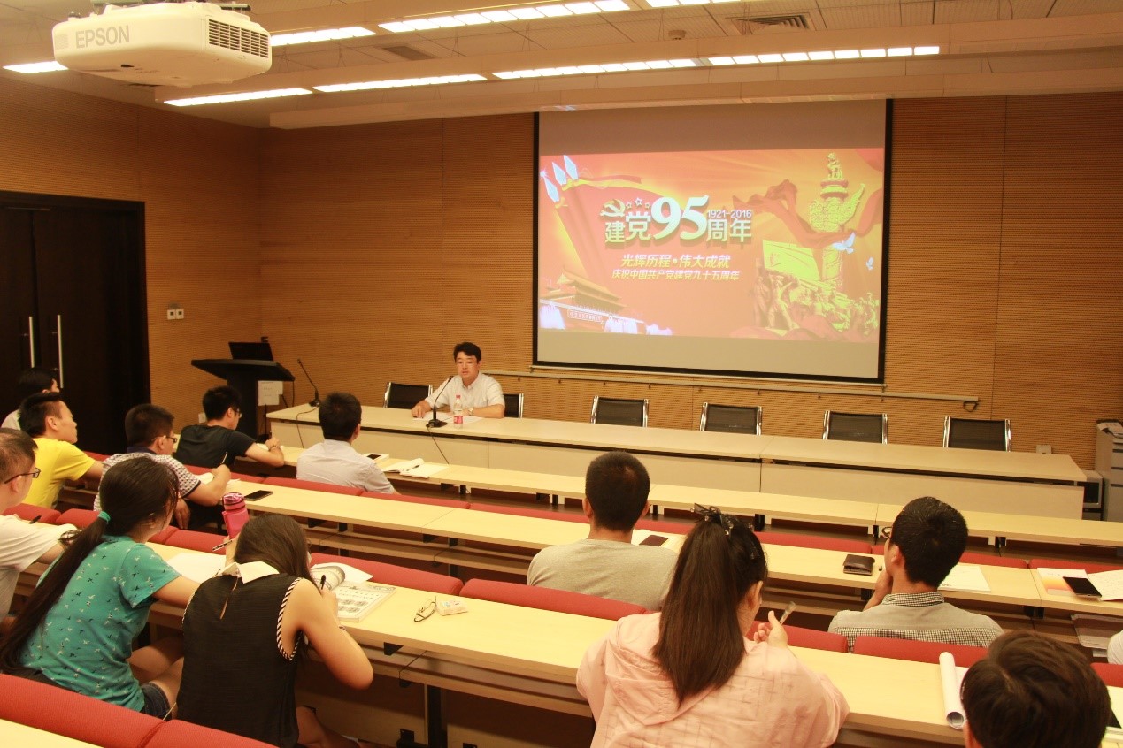 (通讯员 蔡海)7月1日,蜜桃av 庆祝建党95周年专题党课在会议楼第三会议室成功举办。学院党总支书记牛志广作了题为“‘两学一做’学习教育与‘双一流’建设”专题党课,学院党总支副书记凌国维及全体师生党员参加了本次学习纪念活动,活动由党务秘书宋立斌主持。