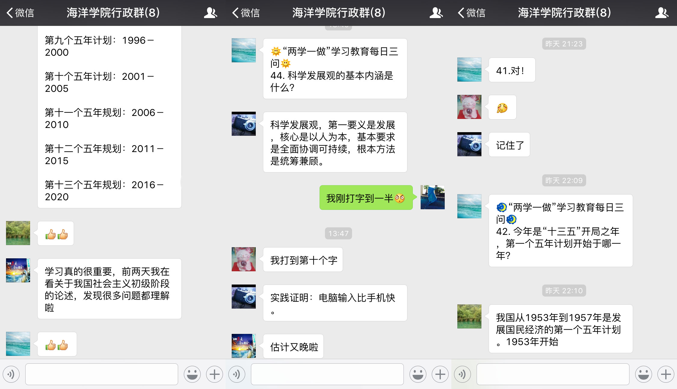截至目前,该活动已经开展了20余天,得到了学院全体党员的积极支持和参与,学习氛围热烈,效果良好。学院师生党员和入党积极分子普遍反映,已经将抢答“三问”问题变成了一种习惯,每次看到问题后以最快速度回答,碰到拿不准或担心表述不到位的问题,及时通过手机上网搜索或翻阅学习资料确定正确答案后迅速答题,这样对知识的记忆和理解格外深刻,学习效果非常明显。而且,利用大家最为随身和常用的手机微信作为学习平台,真正做到了随时、随地学习。学院将会继续坚持开展此项活动,并积极探索其他有益形式,保证学习教育的日常性、参与性、互动性,将“两学一做”学习教育推向深入。
