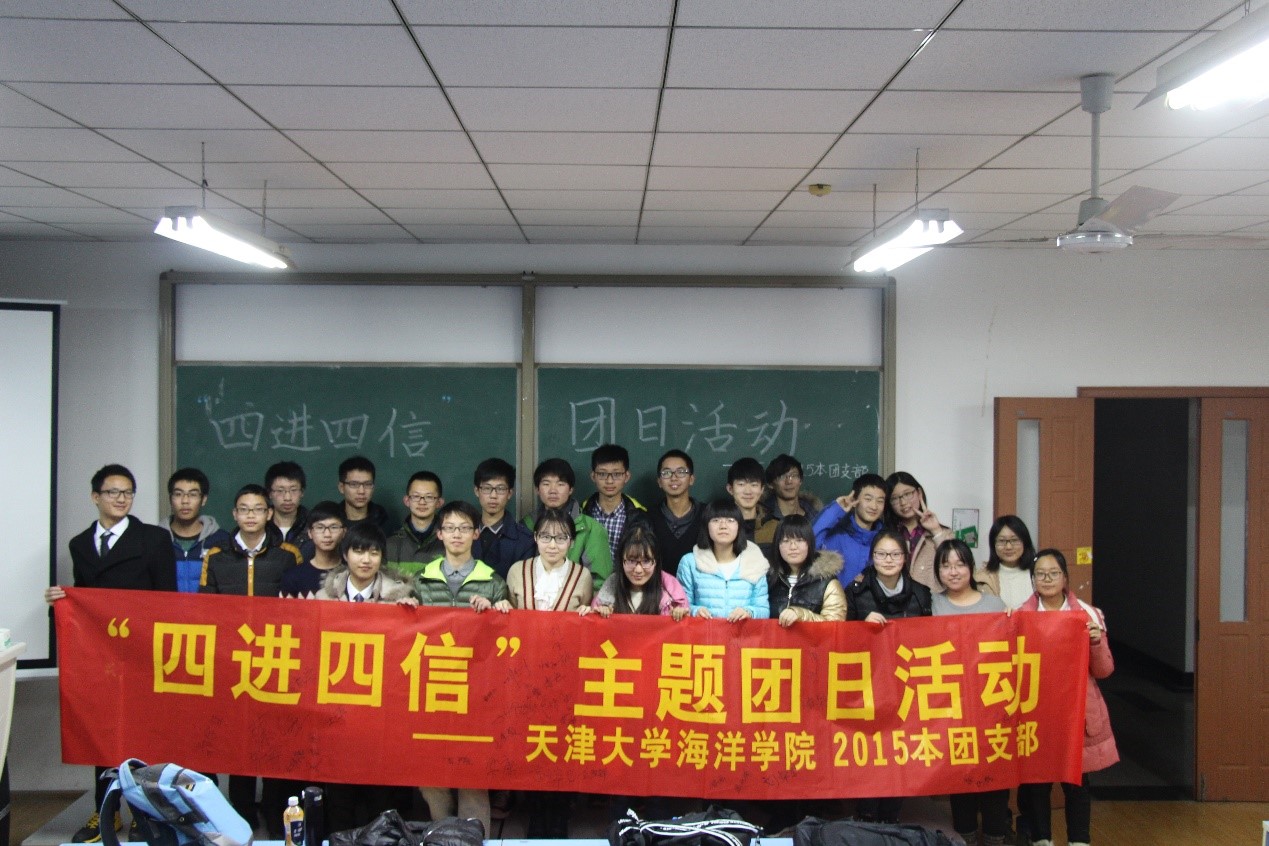 (本站讯 通讯员:蔡海 王梦涵)11月29日晚,蜜桃av 海洋技术2015本团支部“四进四信树信念,拥抱海洋强国梦”主题团日之“思考”主题班会暨团日活动闭幕式在第八教学楼如期举行。