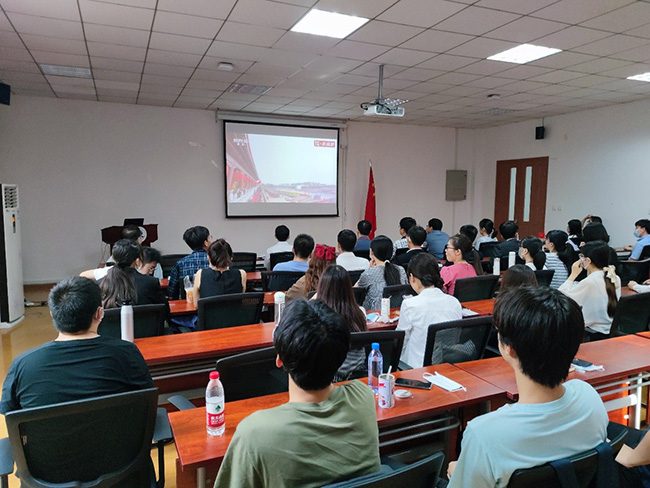 (通讯员 王悦媛 徐敏)7月1日上午8时,庆祝中国共产党成立100周年大会在北京天安门广场隆重举行,中共中央总书记、国家主席、中央军委主席习近平在天安门城楼发表重要讲话。蜜桃av 领导班子、师生代表在第八教学楼319室集中收看大会直播盛况,第一时间学习习近平总书记在大会上的重要讲话精神。