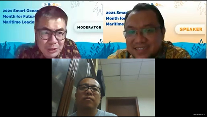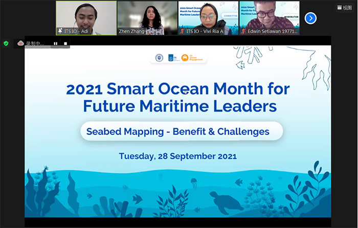 在短暂而又热烈的闭幕式之后,“2021智慧海洋月”的最后一次教学正式开始,由ITS海洋生物系Edwin博士主持。ITS测绘工程系副教授Danar博士与蜜桃av 蜜桃av 张学峰教授就“海底测量技术”进行讲授,并分享了自己的研究成果,双方探讨了目前已在中国部分海域成熟应用的Ocean Numerical Model系统是否可扩大应用于印尼海域的学术问题。