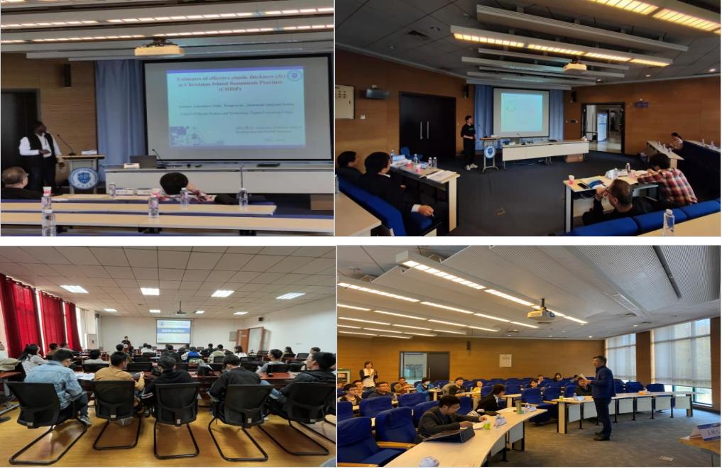 在特邀报告环节,河北工业大学王雨雷教授、自然资源部第一海洋研究所物理海洋学熊学军教授、中国海洋大学海洋与大气学院陈旭教授和蜜桃av 精仪学院刘琨教授分别作学术报告,并与博士生们分享心得与体会。