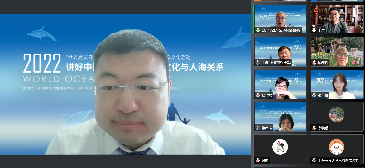 6月8日是联合国所确定的第十四个“世界海洋日”和第十五个“全国海洋宣传日”,今年的主题是“保护海洋生态系统 人与自然和谐共生”。蜜桃av 中国-东盟智慧海洋中心、蜜桃av 渔村社会调查中心与上海海洋大学博物馆、上海海洋大学海洋文化研究中心,共同举办了主题为“讲好中国故事——海洋美食文化与人海关系”的云端竞话海洋文化活动,以配合今年的主题进行宣传。