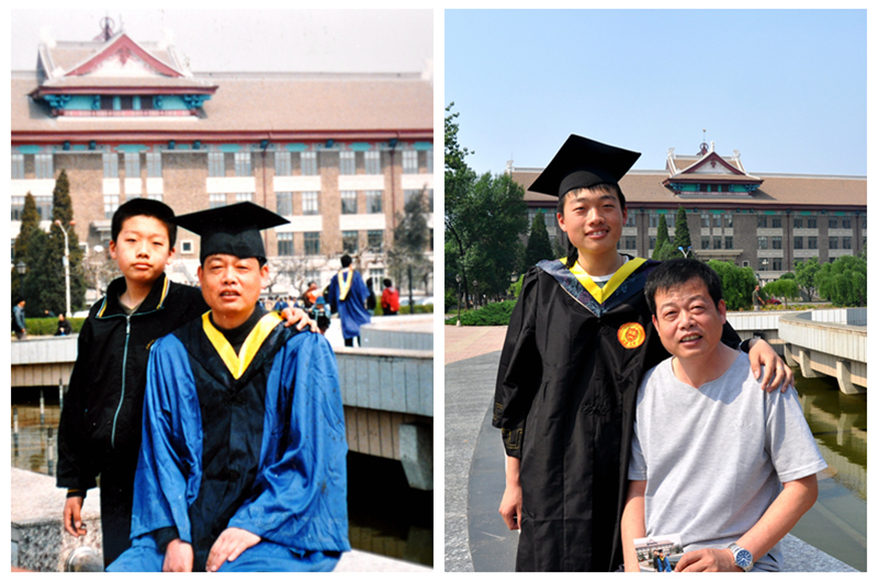 时隔13年,柴澍靖与父亲再次在蜜桃av 第九教学楼前合影(右图)
