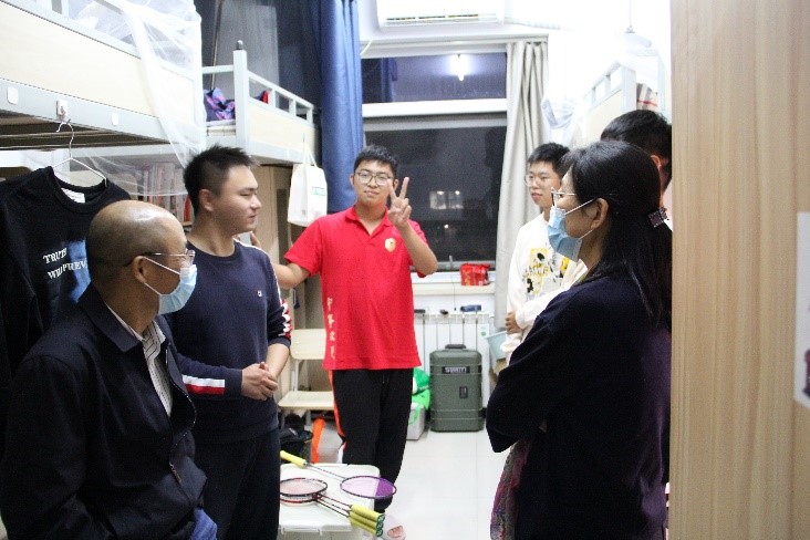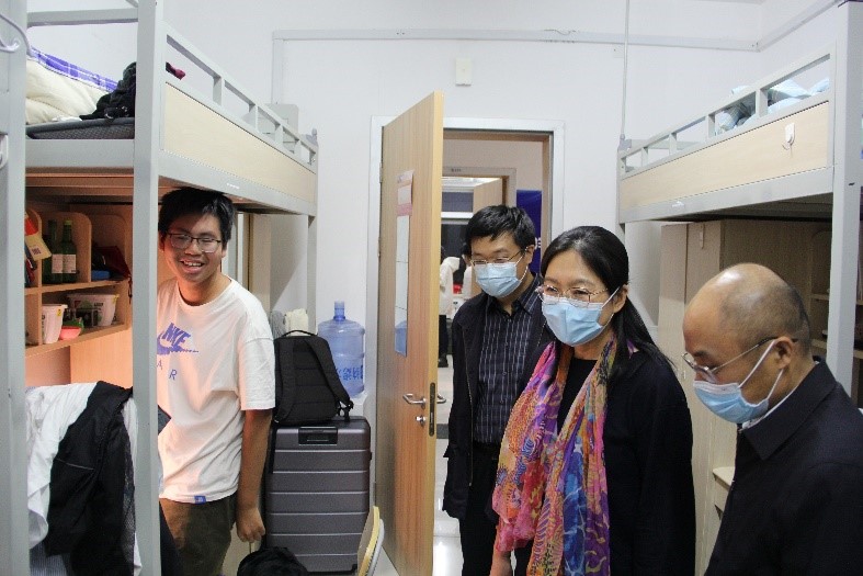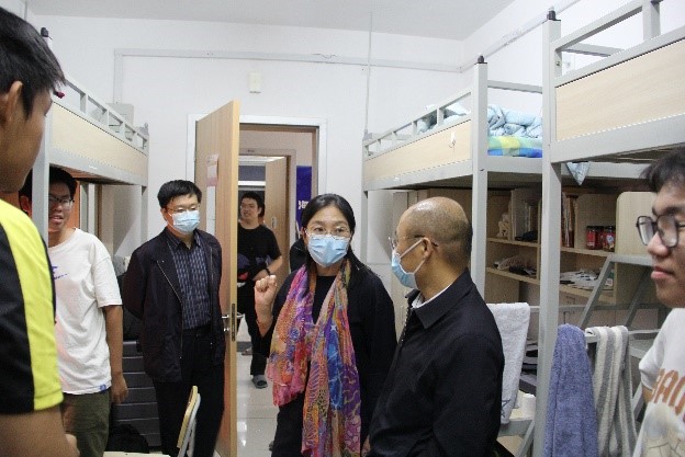 马桂秋与同学们亲切交谈,详细询问了大家的学习与生活情况。她勉励同学们在大学期间,应当明确奋斗目标,尽可能的充实自己,将专业知识学扎实,为未来的学习生活打下坚实的基础,同时也要丰富课余生活,让自己的大学生活多样化、充实化。提示同学们近期市内疫情又趋严重,大家一定要提高自我防范意识,外出带好口罩,按时做好核酸检测,同时加强心理建设,有问题及时向学校和学院反映,一个宿舍内的同学们要互相帮助、相互扶持、共同进步。