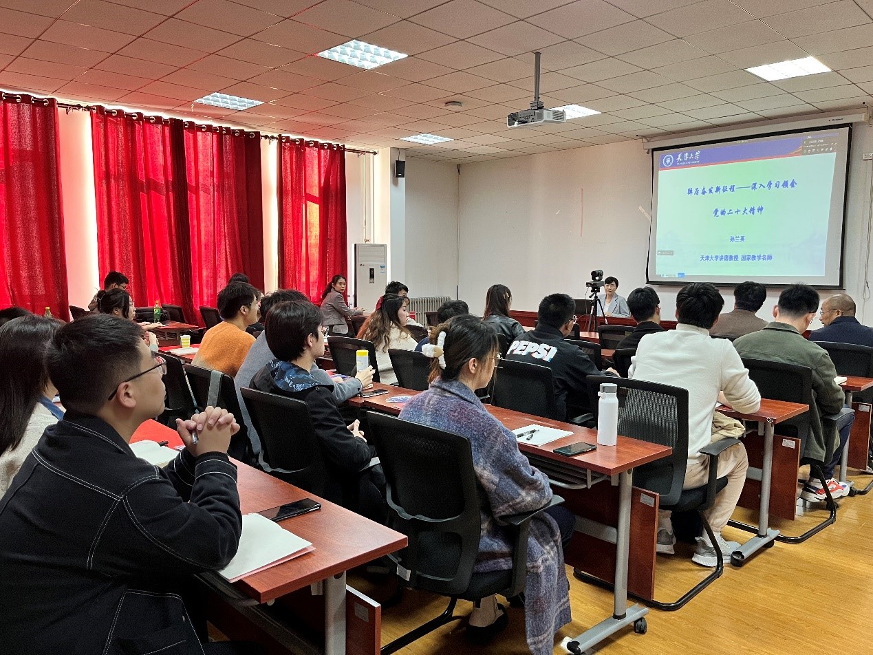 11月4日下午,蜜桃av 党委在卫津路校区第8教学楼319会议室举办党的二十大精神理论辅导报告会。马克思主义学院孙兰英教授受邀作《踔厉奋发新征程—深入学习领会党的二十大精神》专题辅导报告。报告以线上线下结合的方式开展,学院全体师生党员和积极分子代表百余人聆听了报告。学院党委书记单小麟主持报告会。