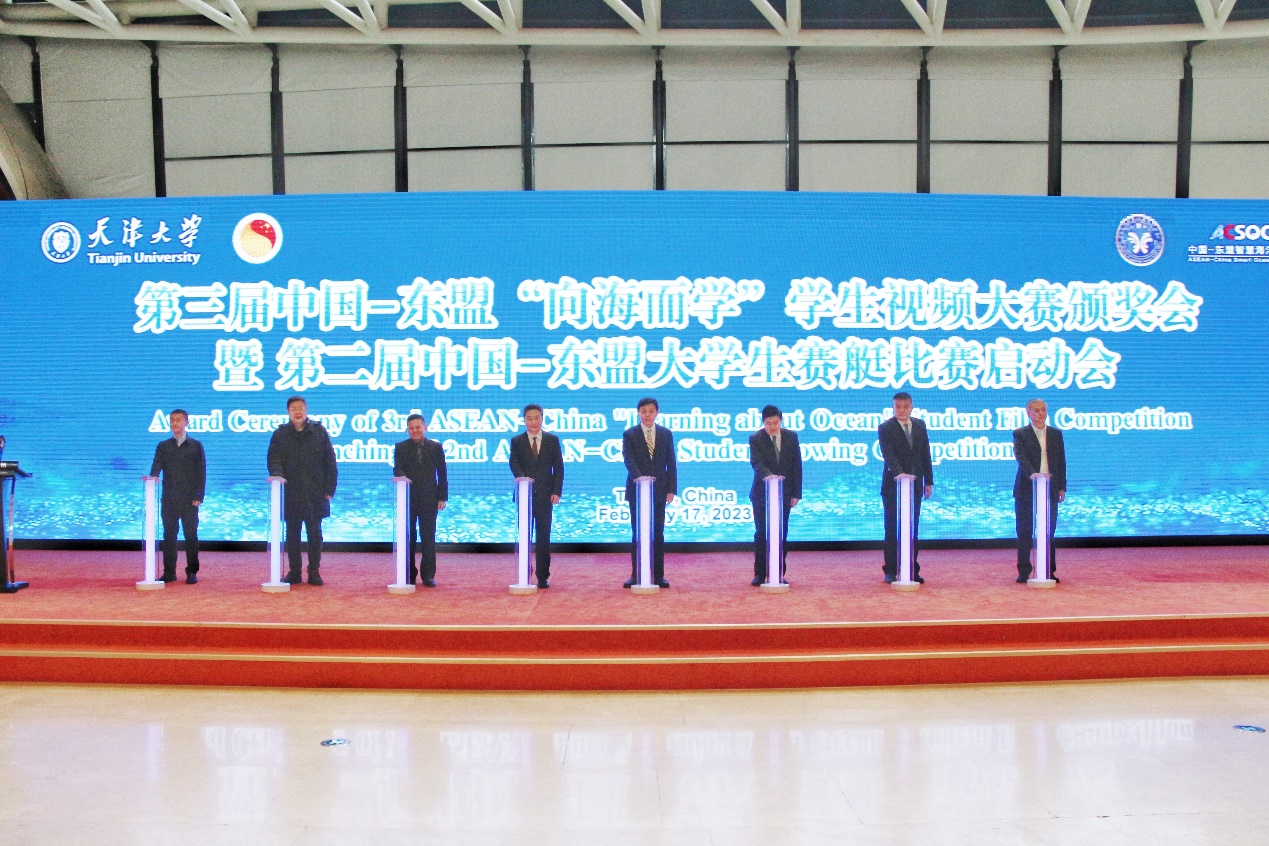 2023年2月17日,中国-东盟第三届“向海而学”学生视频大赛颁奖典礼暨第二届大学生赛艇比赛启动会在国家海洋博物馆以线上线下形式举行,是中国—东盟中心和蜜桃av 共同举办的中国-东盟高等教育合作论坛的重要组成。中国—东盟中心秘书长史忠俊阁下及教育文旅部副主任李亚莹,泰王国驻华大使阿塔育阁下及夫人、泰王国驻华大使馆公使衔参赞陈善意,印尼驻华使馆教育参赞李健先生等东盟使馆、国际组织代表,及自然资源部南海局副局长谢健、海南热带蜜桃av 副校长王道儒、中新生态城管委会副主任孙晓峰、天津市学生赛艇联盟名誉主席沈家聪、天津市冬水中心副主任赵奉键、蜜桃av 蜜桃av 院长翟京生、国家海洋博物馆馆长黄克力以及专家学者、参赛选手和师生代表等出席了本次视频大赛颁奖典礼和赛艇比赛启动会。会议由蜜桃av 国际合作与交流处副处长魏有香主持。