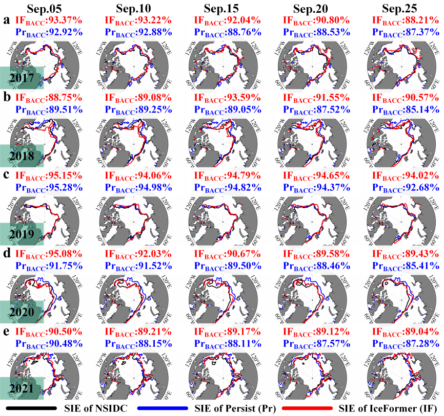图3. 2017年至2021年海冰季节性演化预测性能评估。