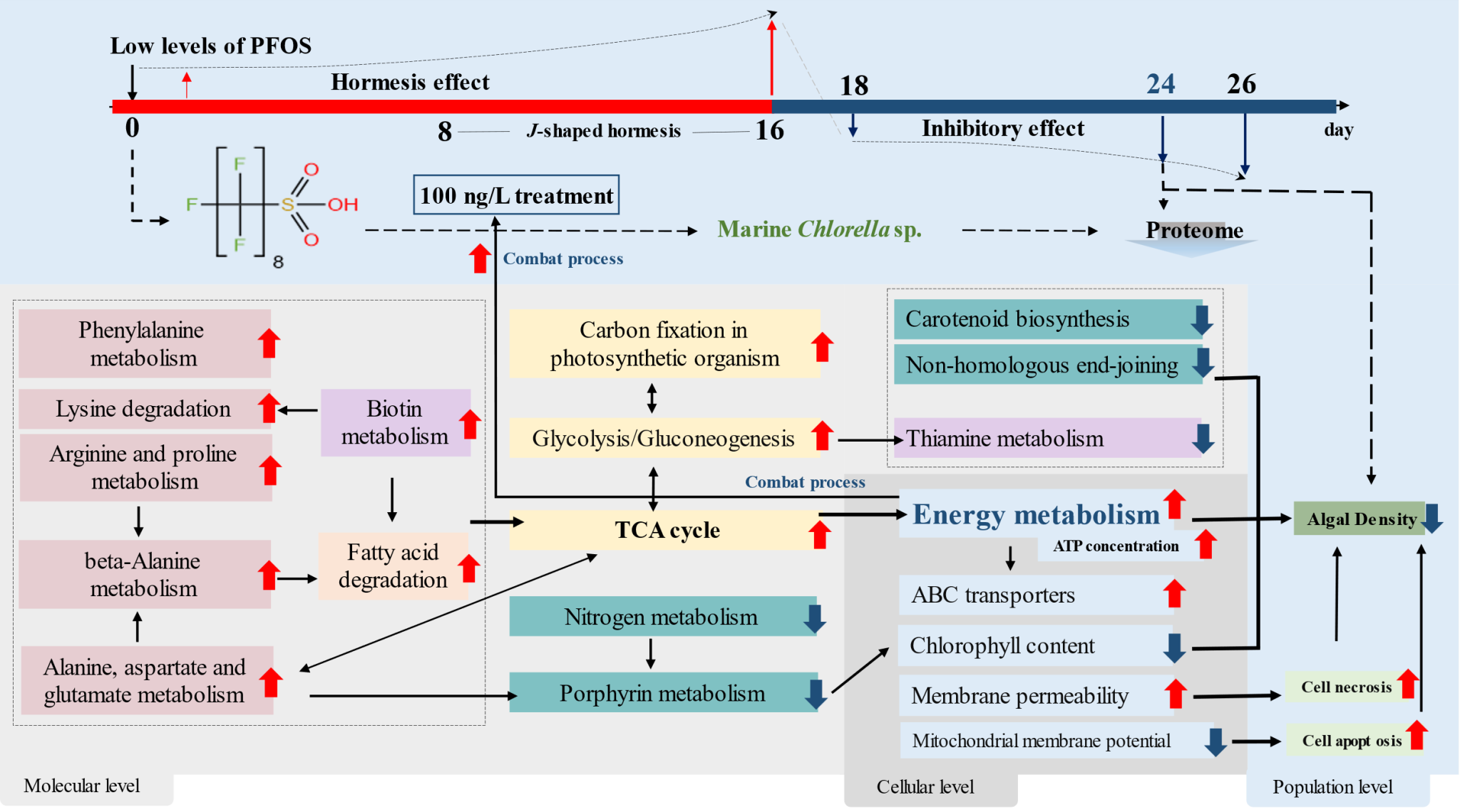 活跃的能量代谢更多地用于对抗或抵消PFOS的环境压力,而非生长和分裂。