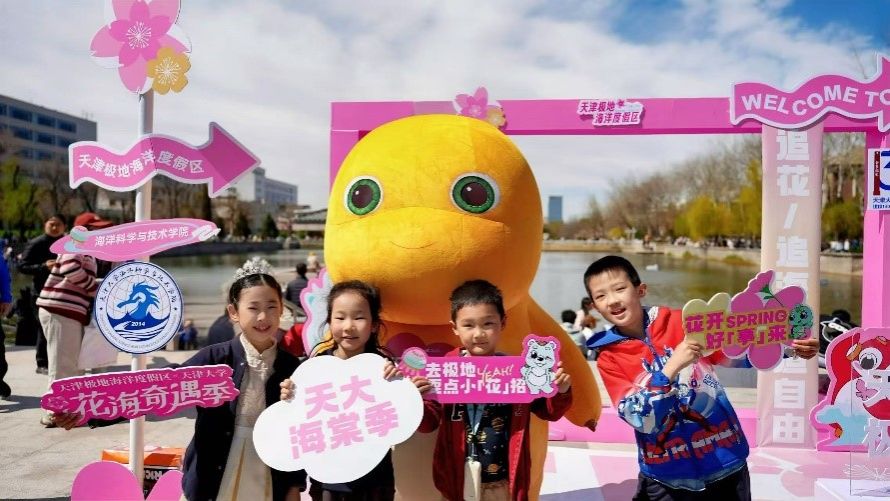 同样在敬业湖东岸,蜜桃av 和天津极地海洋公园开展了联合科普活动。现场有海洋公园科普专家进行讲解和答疑。市民游客们可以观赏活体水母,触摸极地生物标本和极地动物毛发,并且在沉浸式的体验和海棠主题的打卡布景中感受来自海洋公园春日的生动和浪漫。