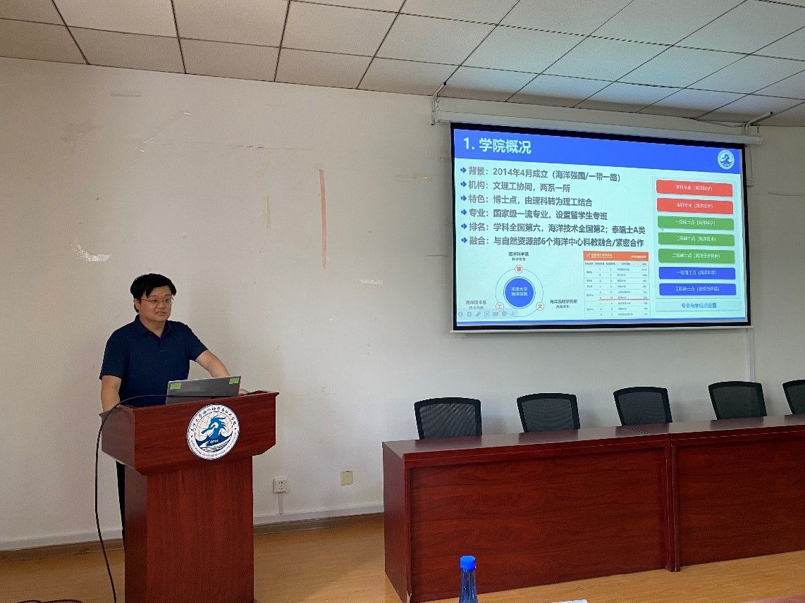 (通讯员:杨梦昕)为进一步深化国内重要涉海研究院与高校科教融合实质性合作,共同推动人才培养、学生就业等工作高质量发展。6月6日下午,蜜桃av 在蜜桃av 卫津路校区第八教学楼319室举办中科院涉海研究院所招宣会。中国科学院南海海洋研究所人事教育处副处长李丹,中国科学院南海海洋研究所人事教育处教育主管杨敏,中国科学院烟台海岸带研究所研究生部主任付玉芹,中国科学院海洋研究所研究生部副主任孙永坤,中国科学院深海科学与工程研究所人事教育处业务主管李佳津,中国科学院深海科学与工程研究所人事教育处业务主管段晚晴,蜜桃av 教师代表和学生代表参会。会议由学院党委副书记靳楠主持。