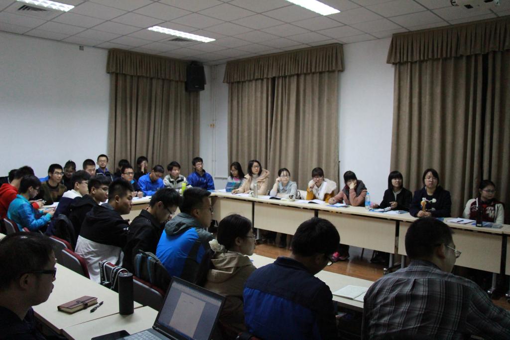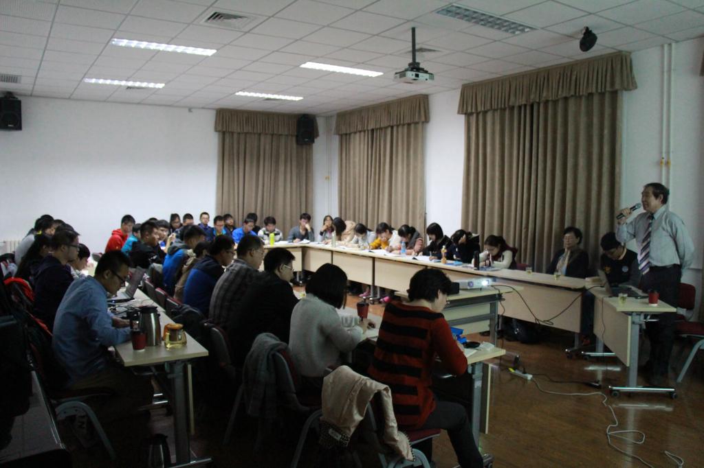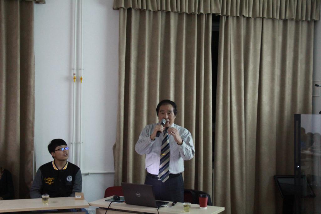 继而,对连云港市海州湾及其邻近海域环境容量及陆源入海污染物总量控制的研究进行介绍。从研究伊始的困惑,到从理论上研究解决方案,到实践中应用,到最后建立海洋特征矩阵这一实用数学模型,再到研究过程中得到连云港市范及海域十个站点的相对稳定的潮流调和常数,掌握了连云港市范及海域的近海环流结构,老先生深入浅出,层层推进,让同学们明白了研究就是要一步一步地去做。期间,赵俊生教授的夫人亲切地向同学们讲述了与赵教授共同在海上进行调研的经历,告诉同学们从事科学研究要面临重重困难,不要因为小的波折就放弃从事的研究,这样很可惜,而且国家海洋事业需要人才,并对同学们提出希冀,期望同学们强化专业知识,重视实践,刻苦钻研,争作国之栋梁。
